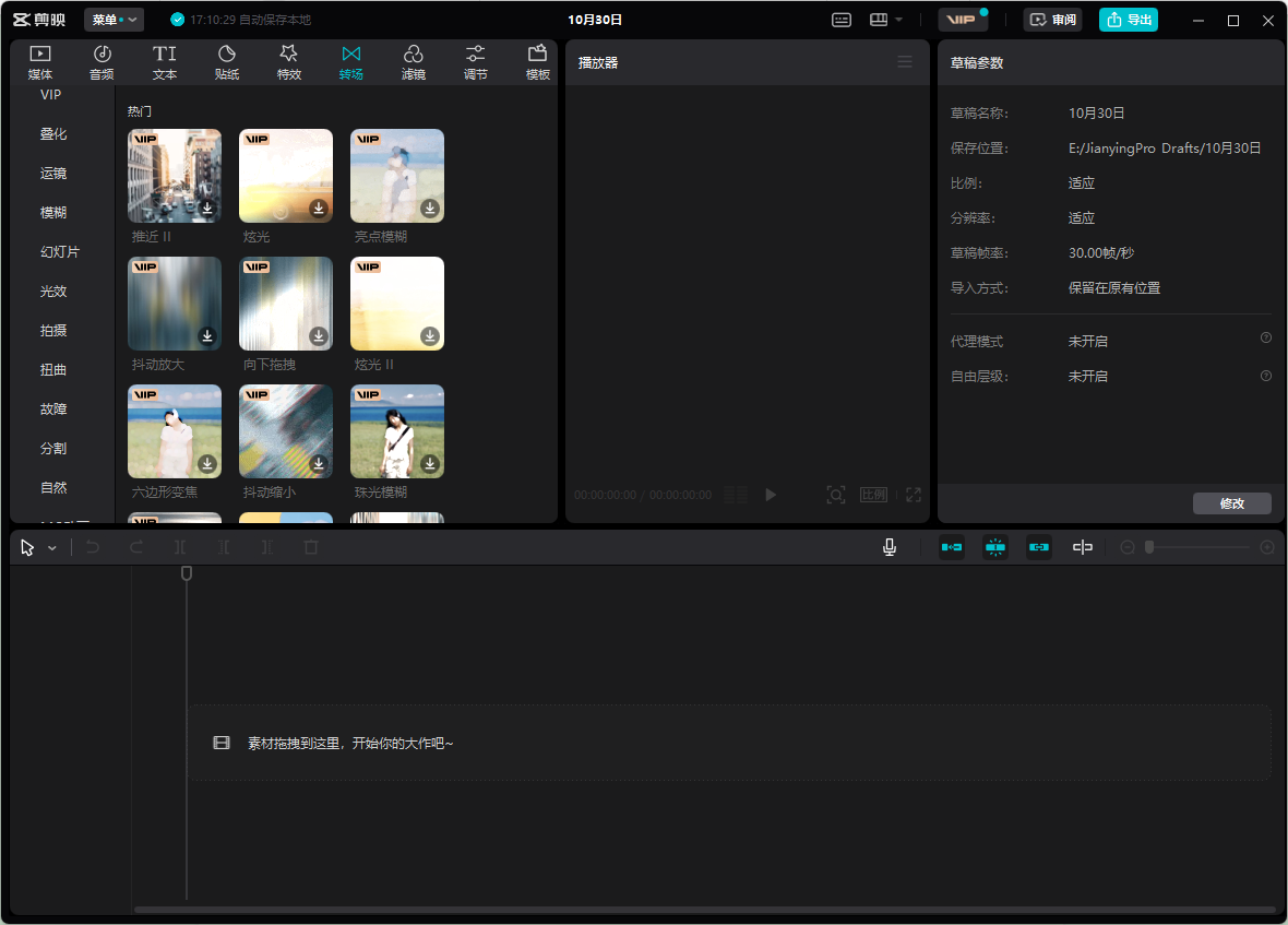 - 转场特效超过3种风格